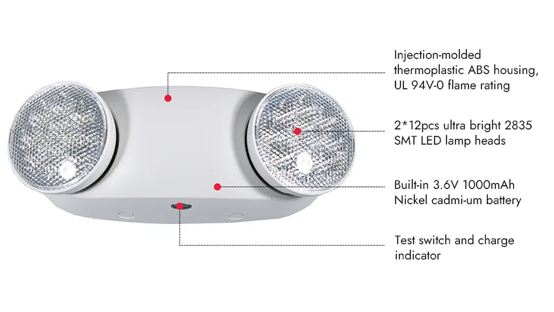 JLEU5 كشاف طوارئ ليد عدستين بمعايير أمريكية، مصباح طوارئ LED برأسين