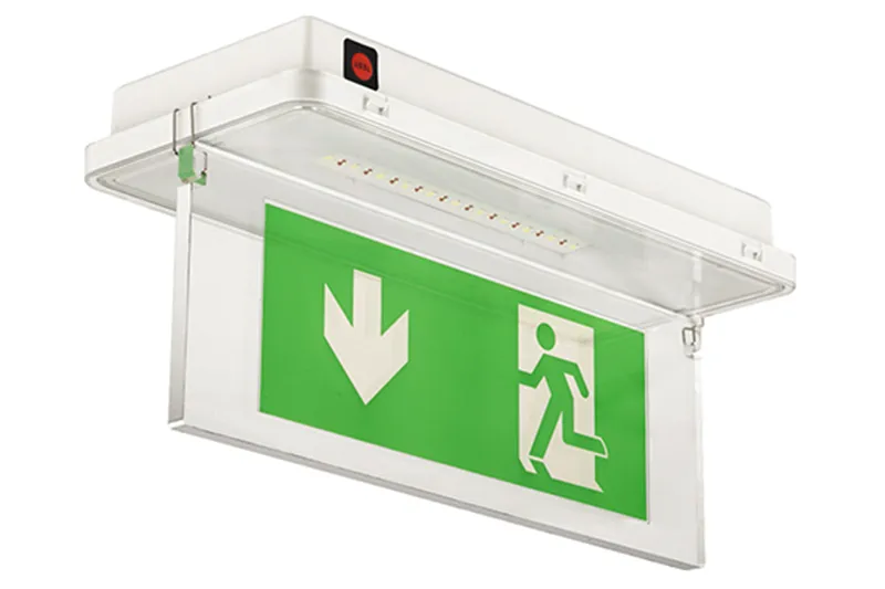 - لافتة خروج طوارئ بتقنية LED، مقاومة للماء وفق معيارIP65، مزوّدة بـ 11 وحدة إضاءة من نوع SMD3528
